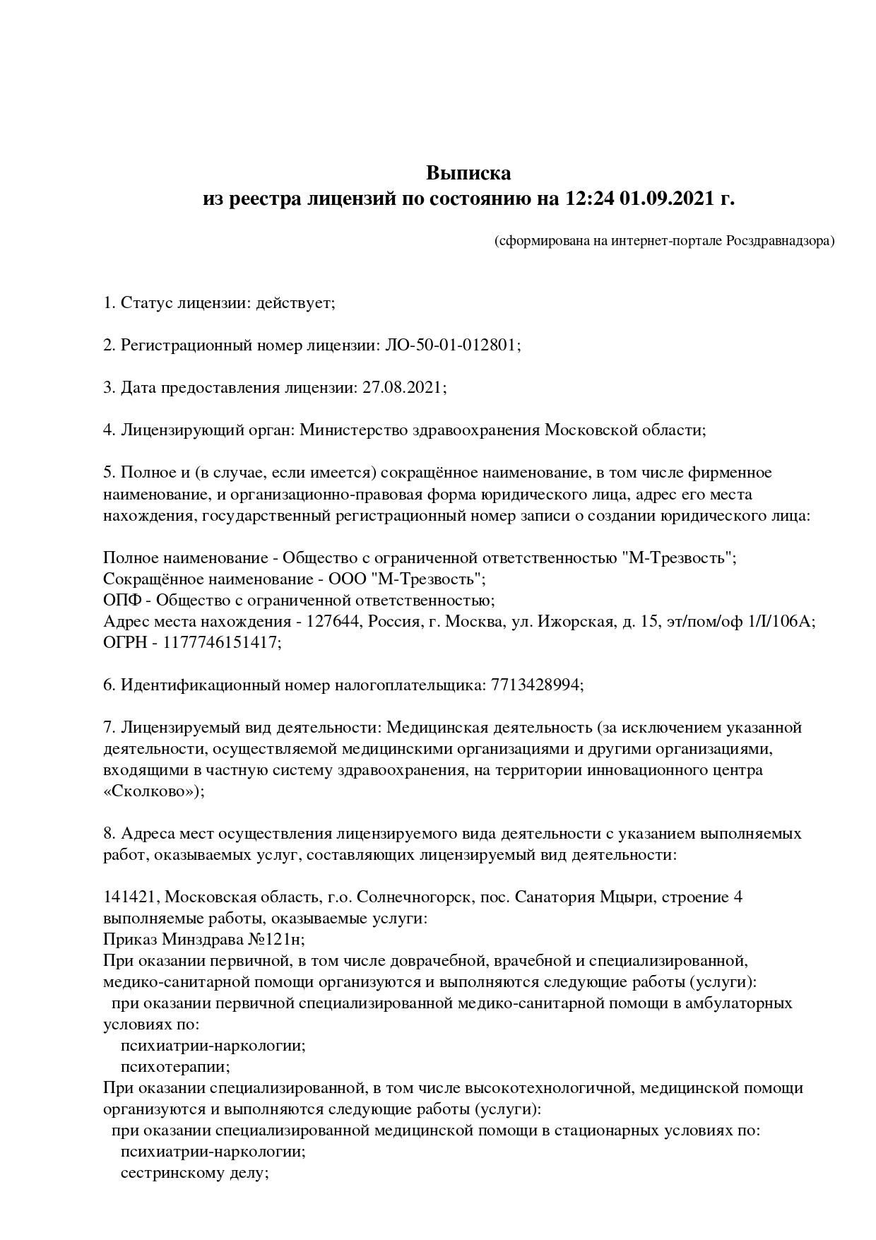 • Сертифицированность. У нас есть все соответствующие разрешения на лечение и реабилитацию пациента. А также на проведение психологических экспертиз. Наши документы примут в любой организации и в суде.